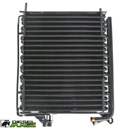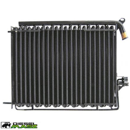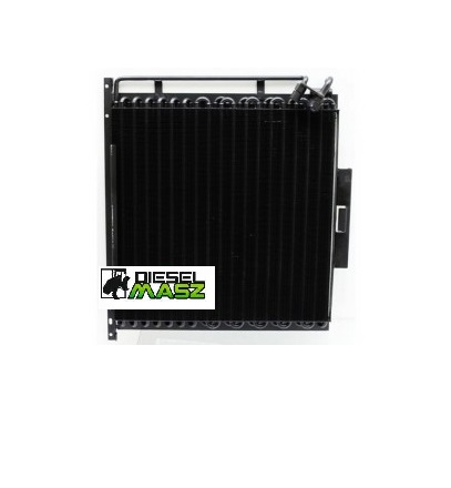 Skraplacz to wymiennik ciepła, zwykle umieszczony z przodu ciągnika, przed chłodnicą silnika. Skraplacz chłodzi sprężony czynnik chłodniczy, przekształcając go z gazowego stanu w ciecz. Ciepło jest wydalane do otoczenia dzięki przepływowi powietrza przez skraplacz.