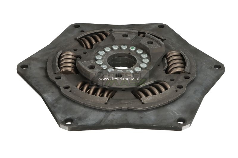 Tłumik drgań o numerach katalogowych 84146340, 248409A2, 90333213 to amortyzator drgań skrętnych stosowany w układzie napędowym dużych ciągników rolniczych marki Case IH (np. Magnum, Steiger) oraz New Holland serii T8 i T9. Jego główną funkcją jest absorbowanie drgań i wibracji generowanych przez silnik oraz przenoszenie momentu obrotowego, co zmniejsza obciążenia przekładni, sprzęgła i wału napędowego, poprawia płynność pracy oraz wydłuża żywotność podzespołów. Montuje się go zazwyczaj pomiędzy silnikiem a skrzynią biegów / sprzęgłem