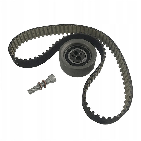 Typowy komplet rozrządu dla silnika marki Deutz obejmuje pasek rozrządu (lub łańcuch w przypadku niektórych modeli), zestaw rolek napinających, często śruby mocujące, a czasem też narzędzie blokowania rozrządu. W zestawie 02937741 znaleziono opis „Timing Belt Kit” zawierający pasek + rolkę.